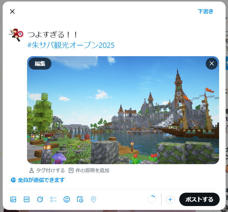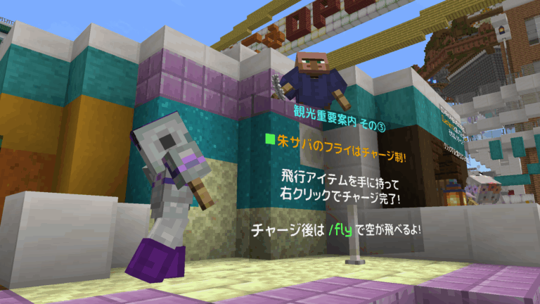 時間をチャージしたら 「/fly」のコマンドで空を飛べるよ!